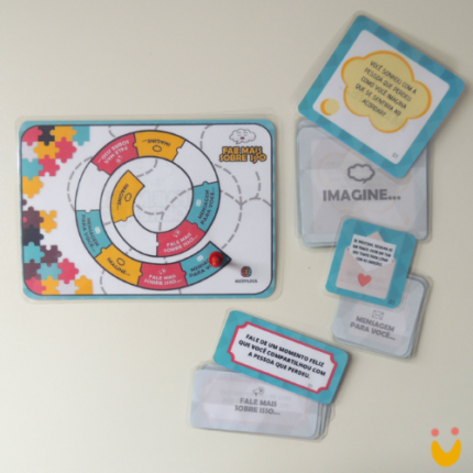 O jogo "Fale mais sobre isso" foi desenvolvido para promover uma conversa sobre o processo de LUTO com crianças, de uma forma lúdica.