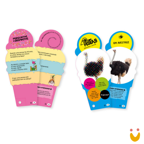 Abremente Desafios, apresenta títulos para crianças entre 3 e 11 anos, com a proposta de estimular o raciocínio, o aprendizado e curiosidades sobre diversos temas. Em formato de sorvete e muito colorido, os livros são divididos por faixa etária em formato de leque, com desafios que vão ampliar o conhecimento das crianças de maneira muito divertida! Os pequenos poderão se aventurar com amigos, em casa, com a família e na escola.