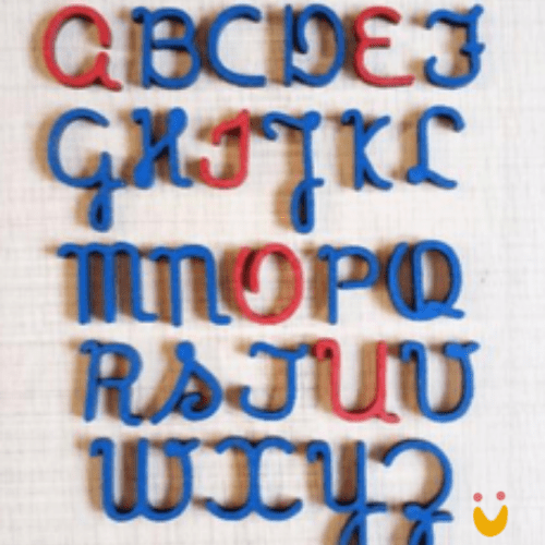 O Brinquedo educativo Alfabeto Montessoriano, é uma kit contendo o abecedário completo, é composto de vogais (azul) e consoantes (vermelho).