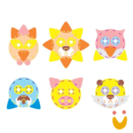 77 peças furadas em tamanhos diversos, sendo: 07 na cor salmão, 09 peças brancas, 14 peças amarelas, 07 peças azuis claro, 06 peças azul, 07 peças rosa, 14 peças marrons, 08 peças laranja e 05 peças verdes claro. 10 cordões coloridos para alinhavar e formar caricaturas.