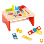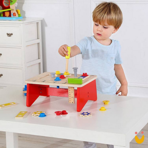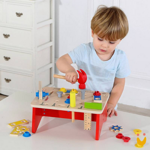 Com essa bancada as crianças podem brincar e construir. Inclui diferentes ferramentas e parafusos.