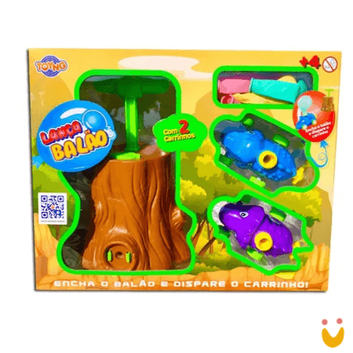 Contém: 1 lançador, 2 carrinhos e 6 balões.