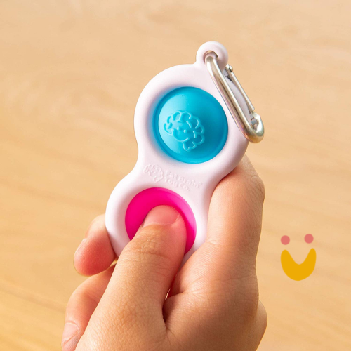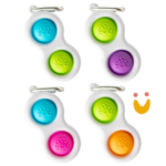 O Simpl Dimpl é um chaveiro, com botões de silicone, que podem ser colocados no shorts, no porta lápis, na mochila, e pode ser levado em qualquer lugar!