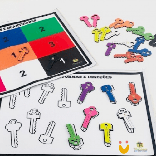 Contém: 2 tapetinhos em lona e 27 chaves em MDF divididas em 9 cores e 3 formatos diferentes