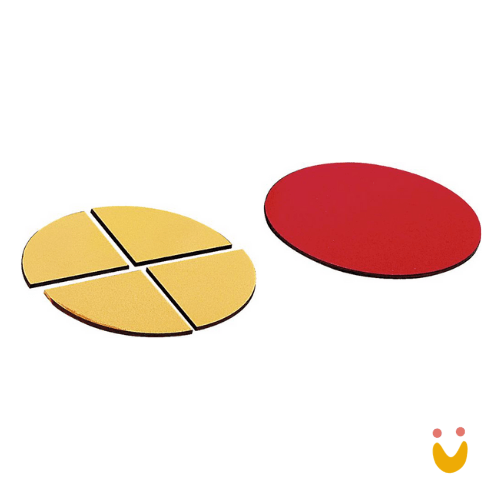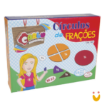 Descritivo detalhado: Composto por 55 peças, confeccionado em M.D.F. com pintura atóxica. Cores representando as frações: 1 inteiro – vermelho, 1/2 – azul, 1/3 – verde, 1/4 – amarelo, 1/5 – laranja, 1/6 – lilás, 1/7 – rosa, 1/8 – marrom, 1/9 – cinza, 1/10 – preto (Formam círculos de 10 cm de diâmetro).