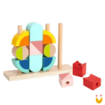 Este Brinquedo Educativo auxilia no reconhecimento das cores, formas, formas geométricas iniciais, correspondência, lógica, ao mesmo tempo que desenvolve as habilidades motoras finas e coordenação olho-mão.