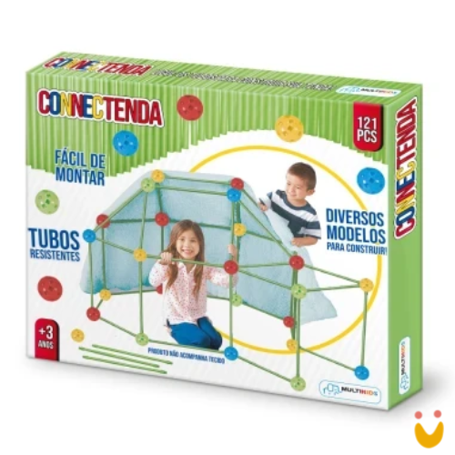 Através de tubos resistentes e conectores multiuso, são diversos maneiras de soltar a imaginação e construir sua própria tenda. São 121 peças, sendo 76 tubos e 45 conectores para montar as construções personalizadas e das mais diversas formas.