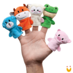 Ao encaixar nos dedos os animais. os pequenos poderão vivenciar os personagens. criando movimentos. sons e vozes diferenciados para cada um.