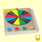 Conteúdo: 01 roleta em madeira medindo 180mm x 133mm x 25mm, 04 tabuleiros em MDF medindo 270mm x 110mm x 6mm,100 letras em MDF medindo 27mm x 27mm x 3mm. Caixa em madeira tipo estojo medindo 318mm x 275mm x 55mm.