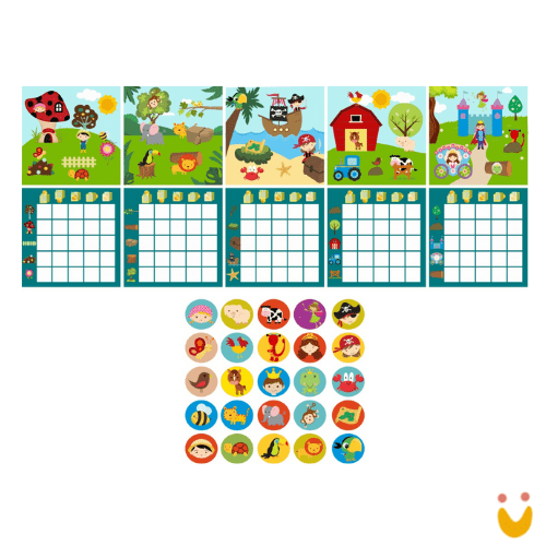 Contém – 25 peças de madeira, 5 cenários e 5 tabelas