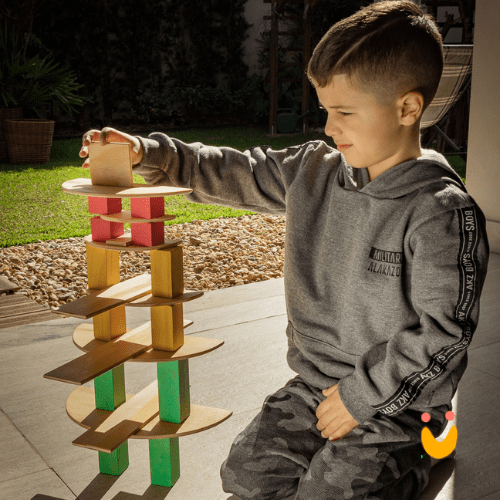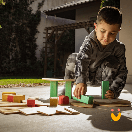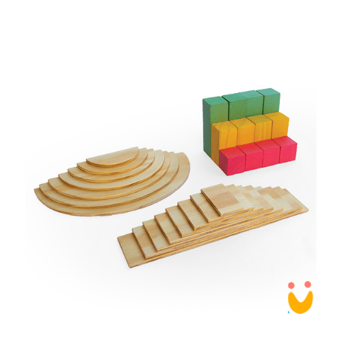 Kit com: 7 semi-círculos, 8 retângulos e 12 blocos geométricos.