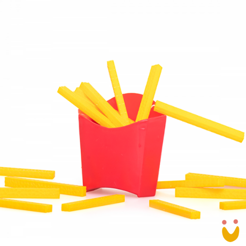 Tire uma batatinha por vez. Se a batatinha errada for puxada, todas pulam e você perde o jogo.