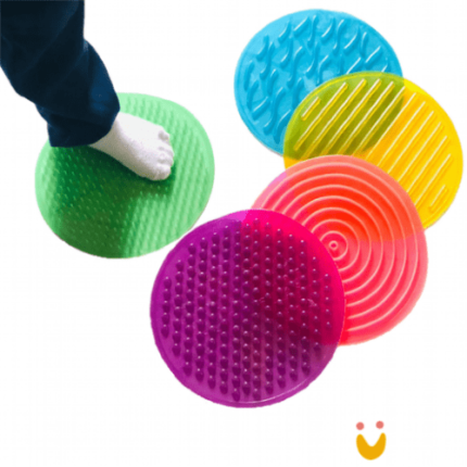 Este Brinquedo Terapêutico contém 5 divertidos tapetes texturizados em cores diferentes, que tem como objetivo trabalhar o tato, sequência, tônus e equilíbrio.