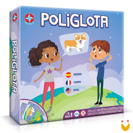Contém na embalagem: 01 tabuleiro, 04 peões cartonados, 4 bases plásticas, 100 cartas e 12 fichas.