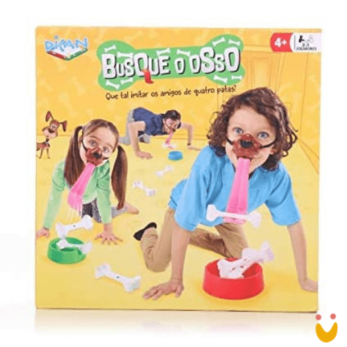 Seja o primeiro a trazer o osso até a tigela e vença o jogo. Ele acompanha 3 máscaras de cão, 9 ossos e 3 tigelas. A diversão e as gargalhadas estão oferecidas nessa brincadeira que vai reunir e animar a família toda.