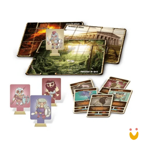 Cruze os 6 tabuleiros modulares enfrentando os monstros da mitologia grega para liberar os deuses.