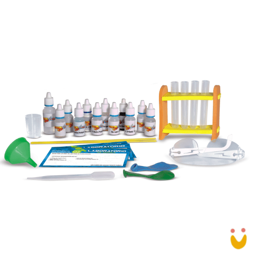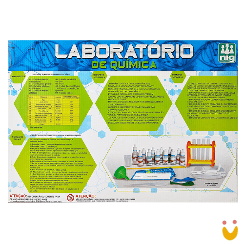 Este Brinquedo Educativo é um laboratório com experimentos químicos testados por professores e fenômenos surpreendentes. São 10 reagentes químicos para a prática de 40 experiências, todas explicadas passo a passo em fichas de instrução.