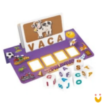 A atividade mais simples propõe que a criança veja tanto a figura quanto a palavra para encaixar os dados. Para dificultar um pouco, depois de memorizar a palavra, a criança se baseia apenas na imagem. Por fim, é possível organizar jogos com mais de um jogador: vence a criança que formar mais palavras corretamente!