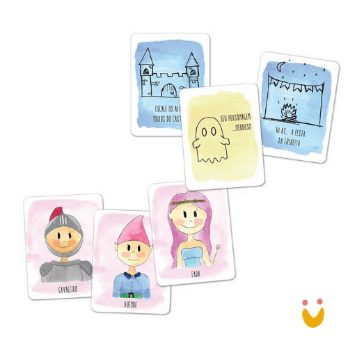 Quem conta um conto aumenta um ponto! Para estimular a criatividade. Quem conta um conto é um jogo diferente. Não existem vencedores ou perdedores. Os jogadores devem se juntar e utilizar as cartas como guias para criar novas histórias, contos de fadas totalmente inéditos.