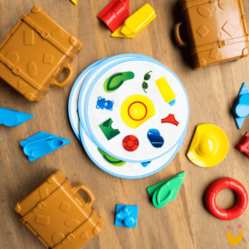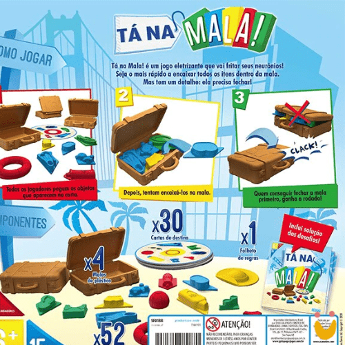 Tá na Mala é um Brinquedo Educativo em forma de um divertido desafio inspirado no tangram em que os participantes competem para ver quem consegue colocar todos os itens na mala primeiro.