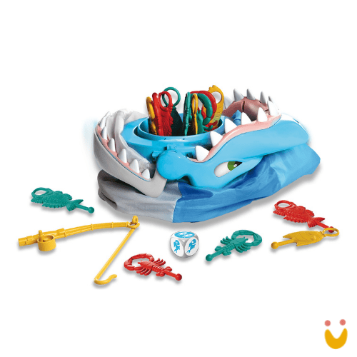 Tire os peixes da boca do tubarão com sua vara de pescar! Quem pegar mais peixes, ganha! Se o tubarão te pegar, você perde tudo! Com o Tubarão Bocão a diversão com a criançada é garantida!