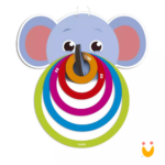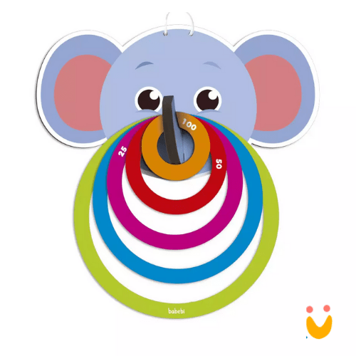 Contém 1 elefantinho, 1 suporte e 5 argolas.
