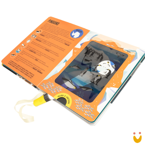 O livro possui uma lanterna de papel destacável, que pode ser utilizada para iluminar as ilustrações e encontrar os animais que estão escondidos em meio aos detalhes. As páginas do livro são grossas e resistentes, o que o torna ideal para crianças pequenas manusearem sem danificar as páginas.