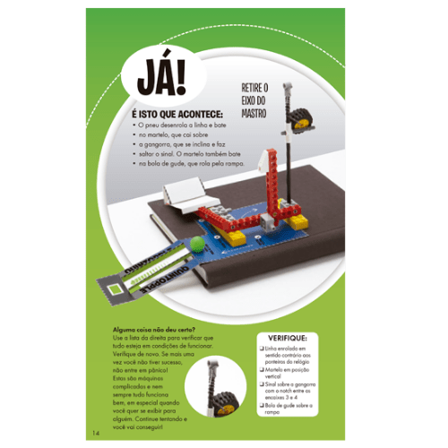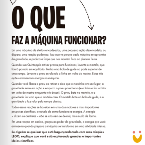 Nós trazemos o conhecimentos e as peças extras que você vai precisar para transformar seus blocos em 10 incríveis máquinas de diferentes reações em cadeia. Você pode combinar essas máquinas para recriar as reações em cadeia que propomos aqui ou inventar as suas.