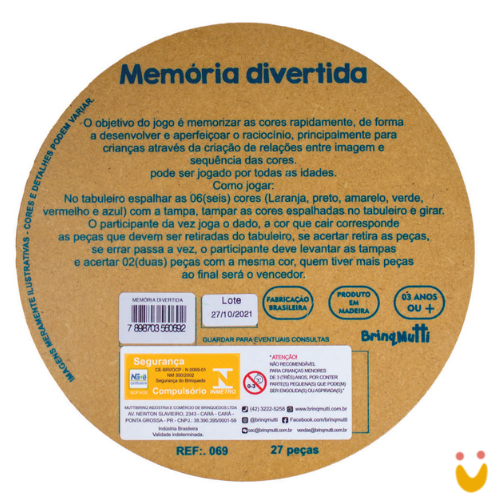 Este jogo divertido é um Brinquedo Educativo estimula a memorização das cores, processo combinatório, relação social e raciocínio lógico.