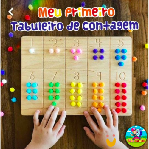Totalmente inspirado em Métodos Montessori, esse tabuleiro é completo, trabalha exercícios de contagem, prática numérica, reconhecimento de cores e coordenação motora fina.