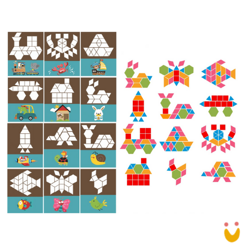 O Tangram é um jogo de lógica no qual aprenderemos a fazer composições com peças geométricas. Incentive o jogo livre, imaginando criações infinitas ou supere desafios, completando cada uma das 12 cartelas que o jogo contém. Ajuda a criança a desenvolver a sociabilização, comunicação, coordenação motora, noção espacial, raciocínio lógico e a concentração.