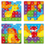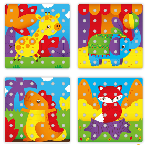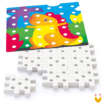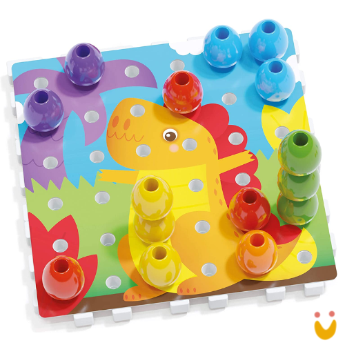 Este Brinquedo Educativo é uma primeira abordagem em forma de jogo para desenvolver a coordenação olho-mão e habilidades motoras finas. A criança pode seguir os padrões apresentados ou brincar livremente.
