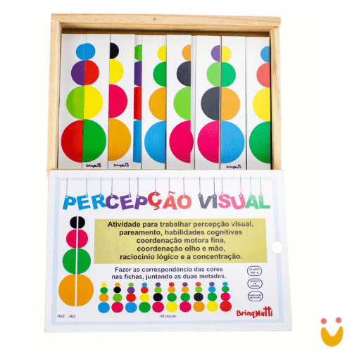 Este jogo divertido é um Brinquedo Educativo que ajuda a criança a reconhecer as cores, reconhecer e agrupar partes. Também desenvolve a atenção e percepção visual, quando a criança precisa montar e juntar as metades corretamente.