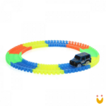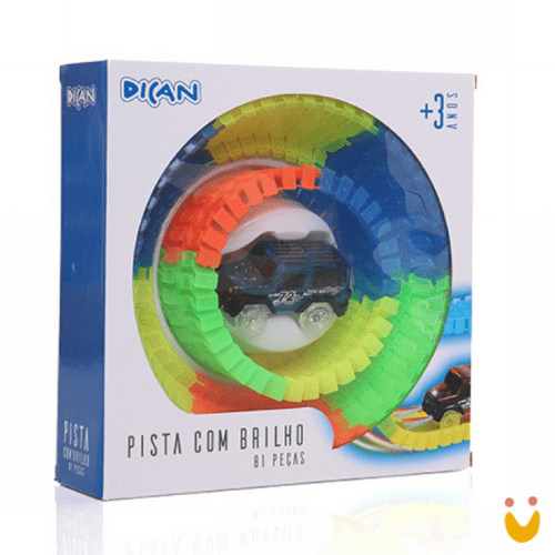 O mais divertido é que a pista brilha no escuro. Legal né? É muita diversão que a criançada vai adorar!