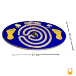 A criança ficará em cima e, através do equilíbrio, terá como desafio e objetivo levar a bolinha mais próxima possível do centro.
