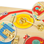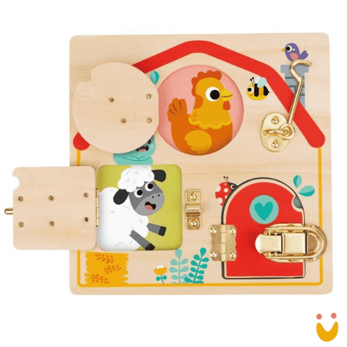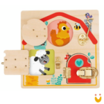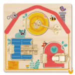Este Brinquedo Educativo ajuda a criança a trabalhar a coordenação motora fina enquanto abre e fecha as janelinhas para descobrir os animais que elas escondem.