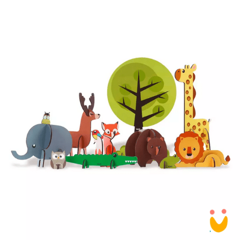 Monte incríveis quebra-cabeças em 3d, conte e reconte histórias, com esses simpáticos animais da savana.