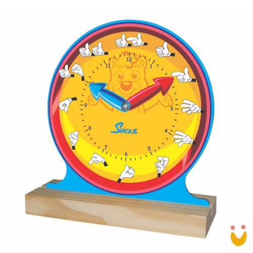 Os usuários da Libras (Língua Brasileira de Sinais)  podem aprender a ler as horas com este Relógio desenvolvido para estimular esta aprendizagem tão importante. Por meio da aprendizagem da leitura das horas é possível estimular a autonomia da criança em relação ao seu tempo.