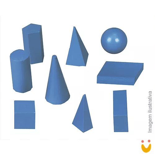 Contém: 11 peças de formas geométricas, base 45mm, altura de 80mm, acondicionadas em caixa tipo estojo medindo 240mm x 185mm x 65mm.