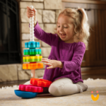 É um brinquedo de empilhamento giratório, que incentiva a coordenação olho-mão, habilidades de engenharia infantil, coordenação motora, percepção visual e espacial. Além de estimular o reconhecimento das cores.