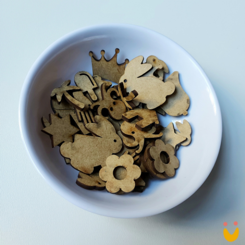 Contém: 45 peças em MDF (aproximadamente 3cm), 1 prato, 6 cartões azuis: nível Fácil, 6 cartões amarelos: nível Médio, 6 cartões rosas: nível Difícil, Regras com 5 formas diferentes de jogar.