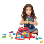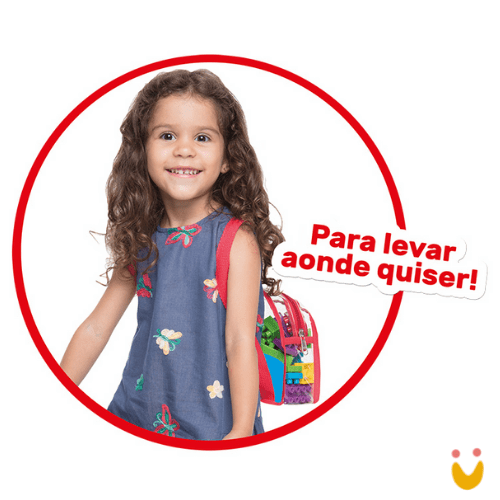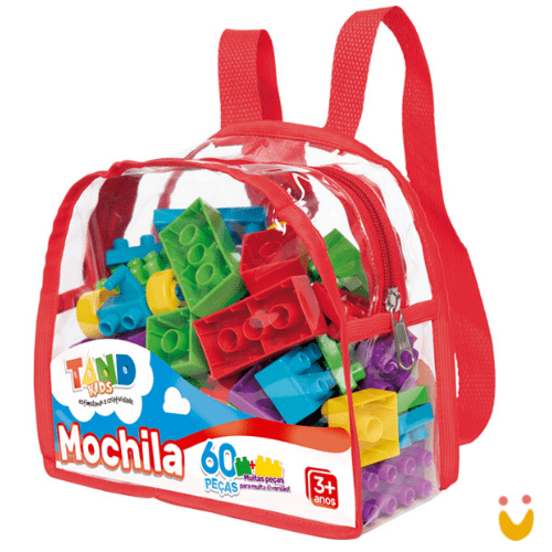 Uma mochila para a criança levar aonde quiser com todos os 60 blocos de montar de Tand kids para se divertir com elas!