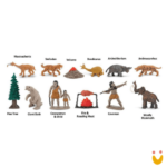 Este conjunto inclui uma mistura de humanos primitivos, mamíferos pré-históricos gigantes e outras características da paisagem pré-histórica.